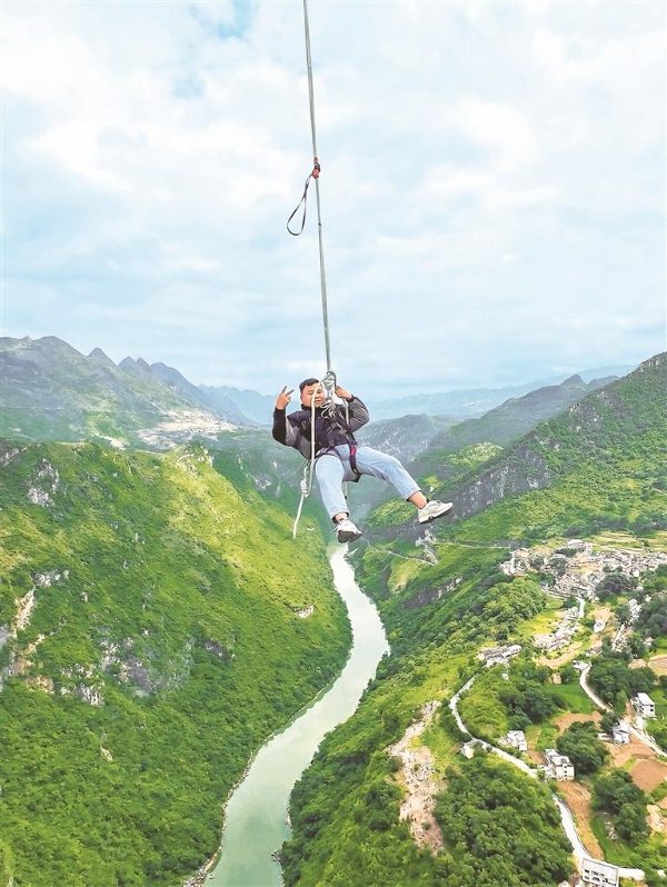 贵州比云高旅业有限公司员工左超文体验花江峡谷大桥极限运动荡绳项目。贵州日报天眼新闻记者 杨诗雨 摄