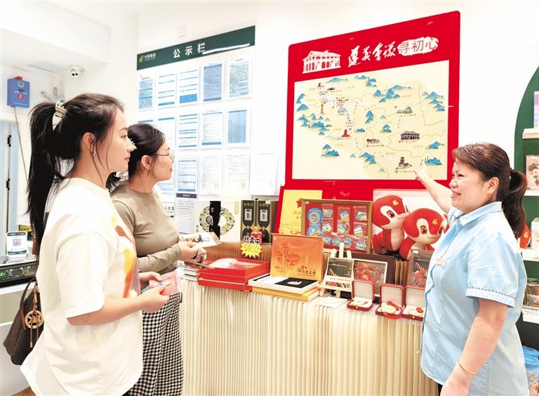 一旁的文创展柜前更是人头攒动,印有茅台渡口波光与红军战士身影的纪念封、明信片成为“抢手货”。游客吴兰说:“这就像一本可以捧在手里的微型历史画册。”