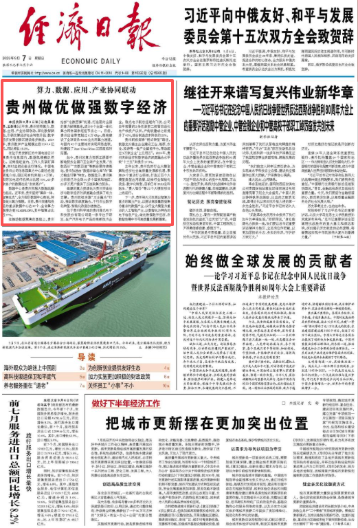 9月7日,《经济日报》刊发新闻《算力、数据、应用、产业协同联动贵州做优做强数字经济》。