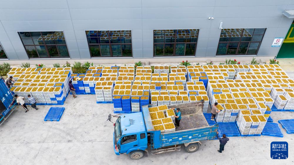 贵州山王果健康实业有限公司5G智慧工厂工人正在卸果。(受访者供图)