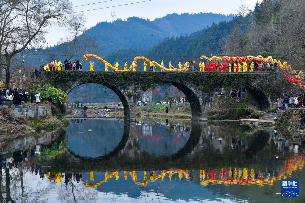 人们在贵州省锦屏县隆里古城举办的“村晚”巡游活动中舞龙(2025年2月11日摄)。新华社记者 杨文斌 摄