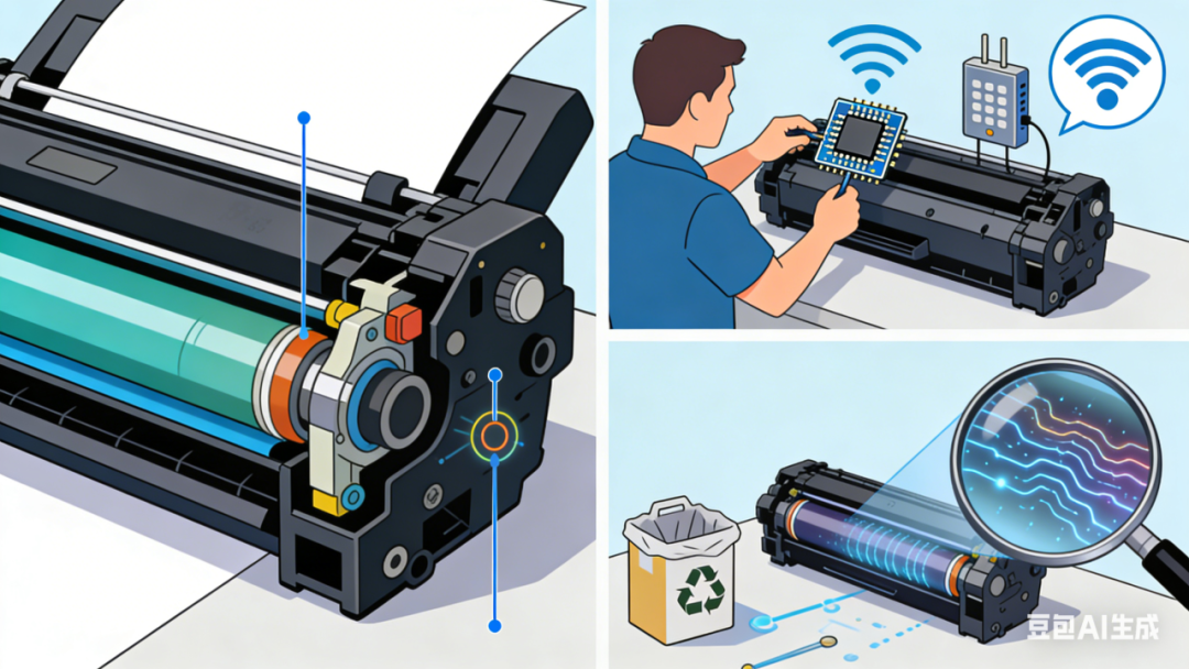 硒鼓,也是打印机泄密的渠道之一。窃密者可能会利用其工作原理,通过安装、维修等机会为硒鼓装上存储芯片、无线通信模块,或通过以旧换新回收硒鼓,分析感光鼓表面残留的静电电荷,以此获取硒鼓打印的文件、资料信息。