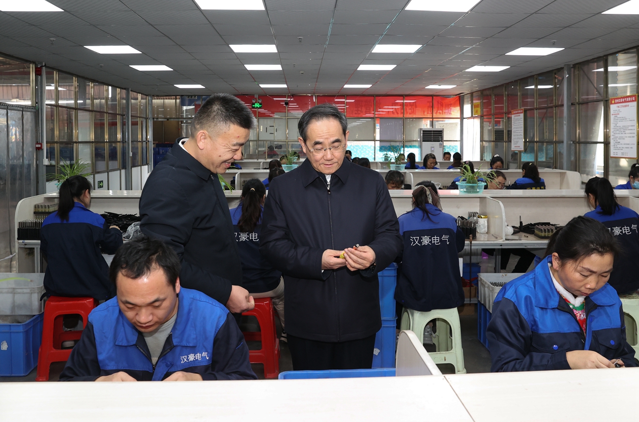 图为徐麟在岑巩县贵州汉豪电气公司考察,了解企业生产经营情况。
